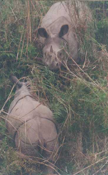 Chitwan National Park, Southern Nepal. The Royal Chitwan National Park is situated at the foot of the Himalayas. It's one of the last undisturbed areas of the Terai region which used to extend over the foothills of India and Nepal. Using elephant is the best way to to watch the wildlife there: they can go in terrains men cannot go even in 4x4 or walking; they are quite and don't disturb the animals; and since they are neither preys or predators, all animals let them come close without paying much attention. The park has one of the last populations of single-horned Asiatic rhinoceros and is also among the last refuges for the Bengal tiger. You can also find there leopards, sloth bears, wild dogs, mongooses, Hispid hares, rhesus macaques, smooth-coated otters, jackals, striped hyenas, muntjacs, pangolins, wild boars, and many other species of mammals. Some of the rivers host Ganges river dolphins. There are 19 species of snakes in the park, including king cobra, Indian python, and monitor lizards. Chitwan is a Natural World Heritage site. |