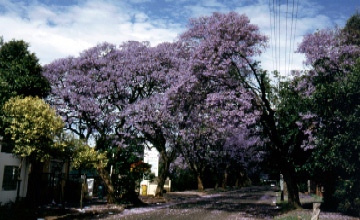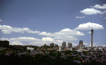 The sight of the poor downtown slums, of the barbed-wired walls, electric fences and watch dogs in the richer neighborhoods is illustrative of how un-safe Johannesburg is. But despite that depressing side, the city has also some endearing traits: The gorgeous jacaranda trees in full blossom grace many streets, transforming them into tunnels of blue and violet velvet. The contrast of the ochre dry soil and the spring vegetation brimming with flowers is spectacular.
