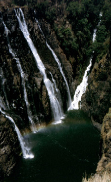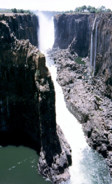 If you speak Lozi, and have correctly translated "Mosi oa Tunya" into "Smoke which Thunders", you have already guessed this is also where the famous Victoria Falls are located. They are quite impressive, even by draught time. The sheer cliff of black basalt, shinning with lush green wet grass is worth seeing.