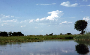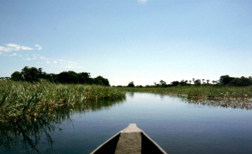 The Kavango is one of the rare rivers of the world that never reach the sea. Coming from the lush watershed of Angola, the river ends up in the Kalahari where is simply evaporates. Its delta is an immense luxuriant marshland at the heart of the desert, where thousands of channels, lagoons, and oxbow lakes, crisscross hundreds of islands teeming with wildlife. The place is rather isolated and almost empty of humans. This makes for very quiet evenings where calm waters, billowing clouds and infinite skies sketch spectacular sunsets. The way to the delta is to go through the waterways in a mokoro, a local canoe, and have long walks on each islands. This gives you a perspective very different from the usual "game drives" in other places, especially when approaching lions.