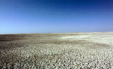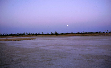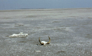 At the edge of the Kalahari, the Makgadikgadi pans offer even more isolation. During the wet season the vast ancient lake fills with a foot of water and attracts huge flocks of flamingoes and endless herds of zebras and wildebeests. But by the end of the dry season, it's a desert where, as far as the eye can see, in all directions, there is absolutely nothing but a blinding white crust of sand and salt under a scorching harsh sun ...and a few bones.