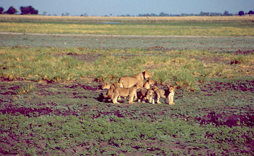 The Chobe National Park in Botswana counts two prides of lions. Some of the adults have collars so the rangers can track where they are. One morning, the smallest of the prides (comprised of a male, three females, and seven cubs) was dozing in the sun when a young elephant, separated from his herd and visibly lost, had the unfortunate idea to wander close by... The three lionesses started to follow it, and then ...attacked.
