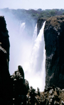 If you speak Lozi, and have correctly translated "Mosi oa Tunya" into "Smoke which Thunders", you have already guessed this is also where the famous Victoria Falls are located. They are quite impressive, even by draught time. The sheer cliff of black basalt, shinning with lush green wet grass is worth seeing.